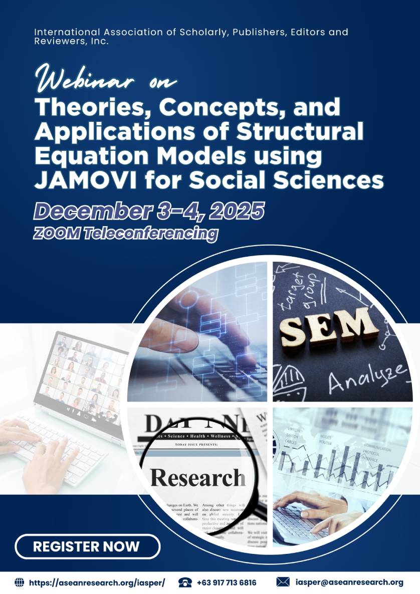 The International Association of Scholarly Publishers, Editors and Reviewers (IASPER) with the SEC Registration No. CN201433407 is inviting you to participate in the Webinar on Theories, Concepts and Applications of Structural Equation Models using JAMOVI for Social Sciences on December 3-4, 2025 at ZOOM Video Teleconferencing.